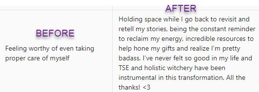 Through that, I have been able to identify the bad habits that do not serve me and are blocking my path and have been able to work towards changing them." - Arynette N.
